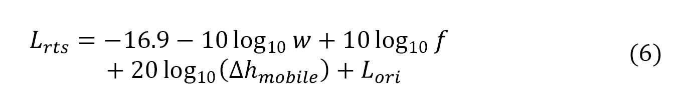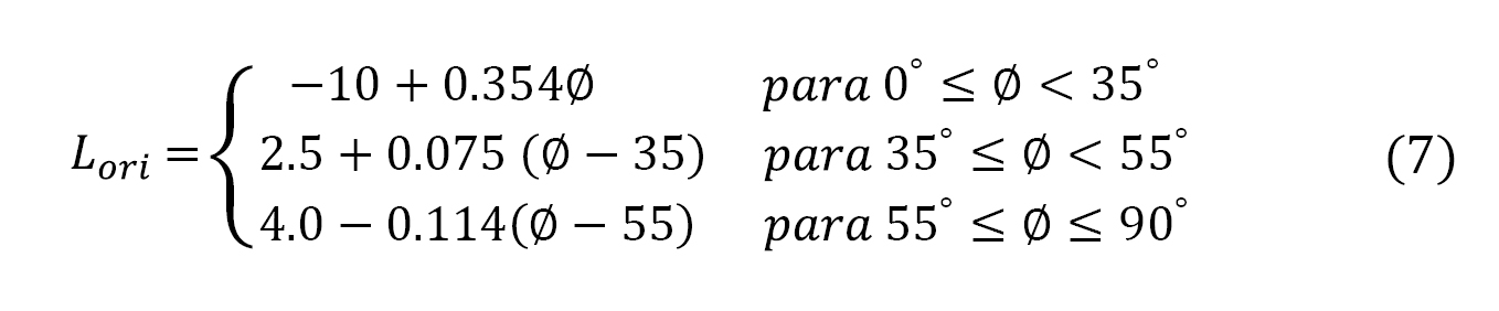 Siendo w la anchura de las calles, Δhmobile es la diferencia entre altura promedio de construcciones que se encuentra alrededor de la EB y la altura de la antena de EM. Lori es una función de orientación de la antena con respecto a la calle, que está dada por (7):
