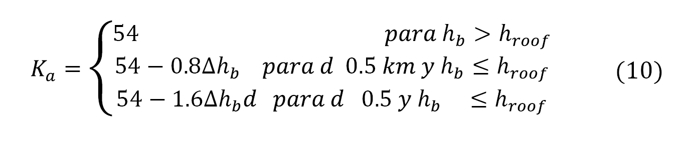 En la cual Δhb es la diferencia entre la altura a la que se encuentra la antena de la EB y la altura media de edificios que la rodean (10):