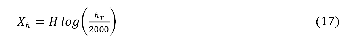 En esta ecuación hb es la altura de la EB, a, b y c son constantes que pueden ser consultados en la Tabla 1. Xf y Xh son factores de corrección de frecuencia y altura de la EM respectivamente, los cuales vienen dados por (16) y (17):