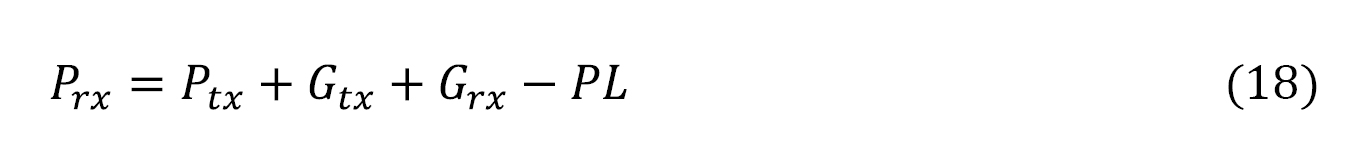 En la que Prx corresponde a potencia medida en la EM, Ptx es la potencia de transmisión de la EB, Gtx y Grx son las ganacias de las antenas del transmisor y receptor respectivamente.