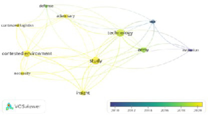 The results indicate that the topics investigated are relatively recent, forming an emerging cluster connecting to contested environment studies. From this context, the concept of “contested logistics” emerges, marking a particular area of interest and opening new research avenues to understand how logistics has played a critical role in conflict or competition scenarios since 2018. This suggests that the field of study is expanding, with significant implications for logistics in strategic, tactical, operational, and technological contexts, which can be addressed through software development.