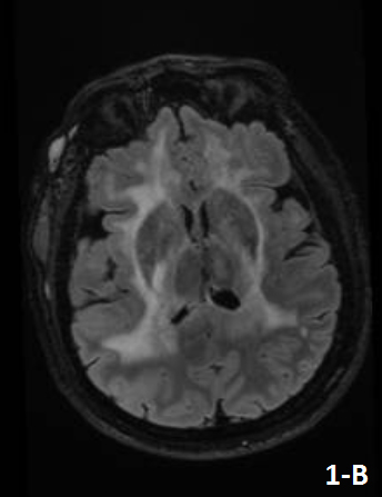 As what happened in our case, LC usually presents as a clinical picture of a rapidly progressing dementia in a previously functional patient, accompanied by the finding of an extensive leukoencephalopathy on MRI of the brain.