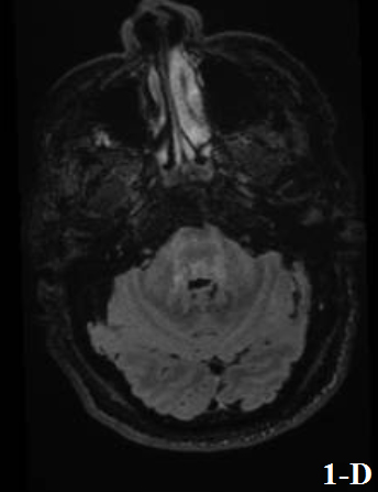 A 59 years old female with a prior history of facial hemangioma, with a three-month progressive cognitive impairment combined with abulia, unmotivated crying, non-fluent language, limb paratonia, bilateral Hoffman, palmomental reflex, and apraxic gait.