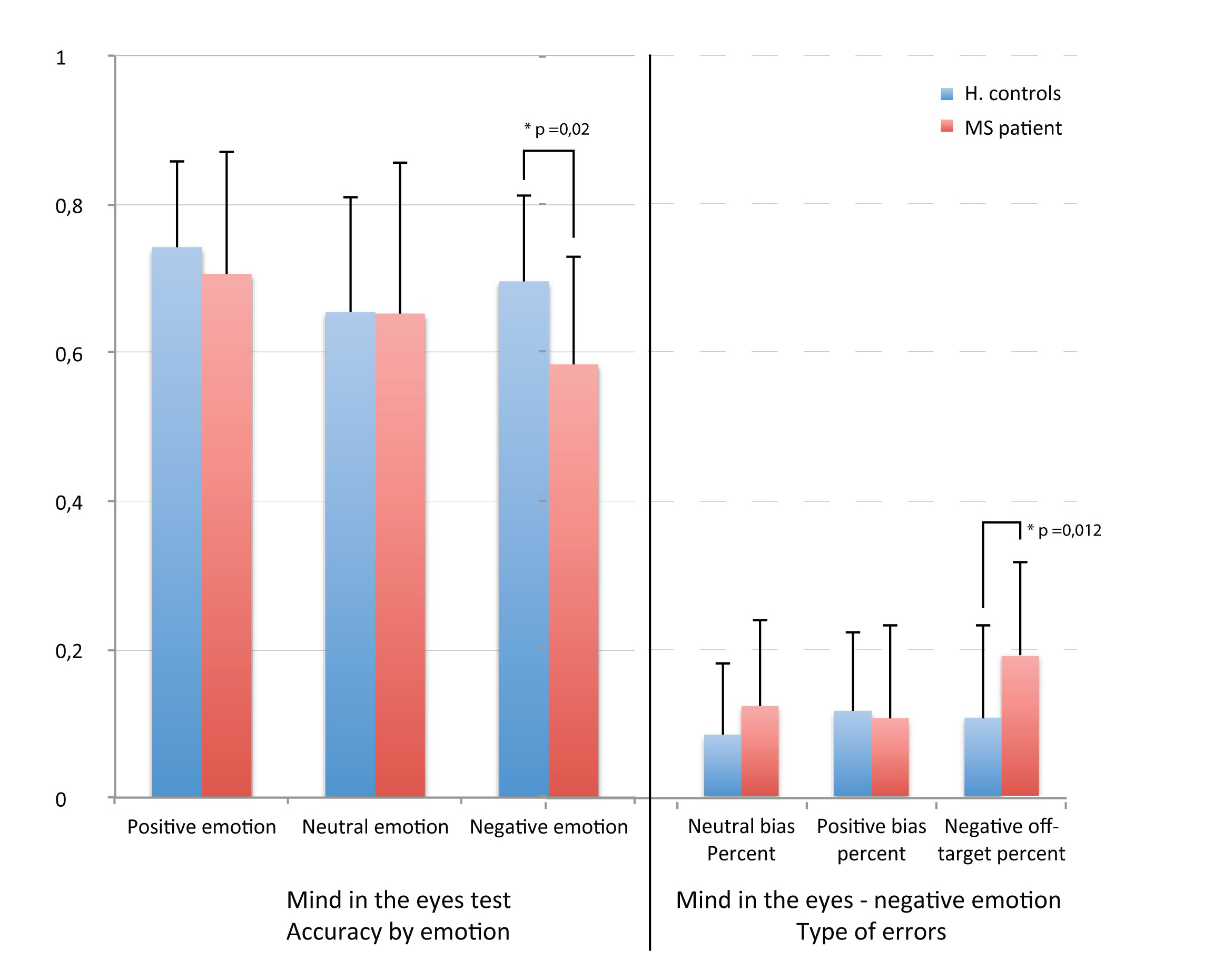 The literature (Calder, Keane, Lawrence & Manes, 2006) confirms dissociated neural substrates for the recognition of specific emotions and specific deficits in recognition of particular emotions for specific neurological conditions (Sprengelmeyer et al., 2002). It is, therefore, possible that particular difficulty in the interpretation of negative emotions is present in MS.