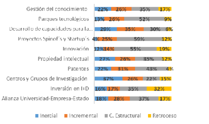 No obstante, resulta crucial incrementar las fuentes de financiación, a través de la puesta en marcha del Comité Estado-Empresa-Universidad. Asimismo, se debe definir una agenda estratégica de ciencia, tecnología e innovación acorde con las necesidades y problemáticas de los distintos sectores sociales y productivos. Puesto que, al verse en riesgo la financiación de este subsistema, emerge el escenario de retroceso institucional, el cual condiciona, en gran medida, el proceso de cambio.