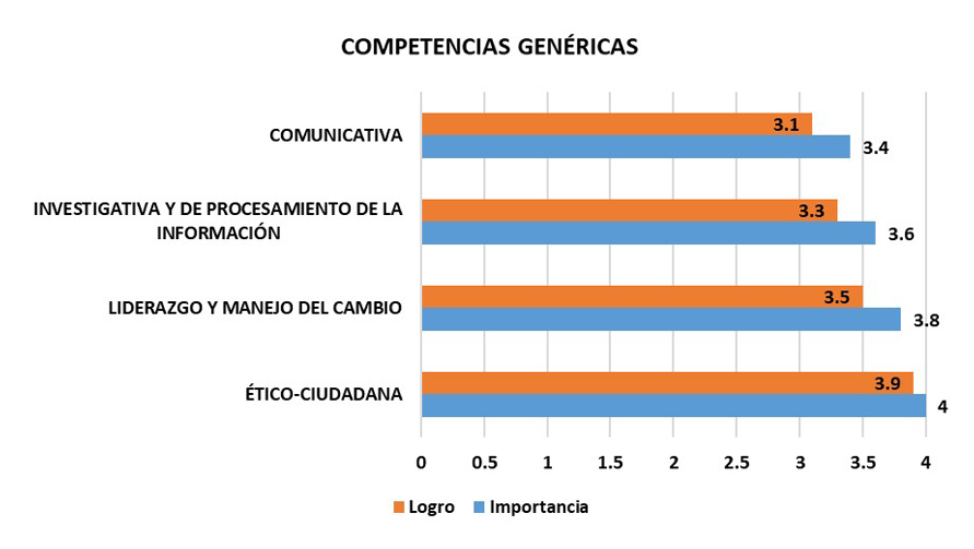 La brecha que representa la competencia de liderazgo y manejo del cambio resalta la capacidad del egresado de adaptarse fácilmente a los cambios y resolver fácilmente imponderables. Finalmente, en menor porcentaje de brecha se presentó la competencia ético-ciudadana, evidenciando que el egresado tiene excelentes competencias ciudadanas y que los empleadores reconocen en ellos la formación en valores y principios éticos.