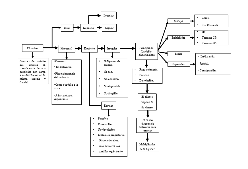 En ese sentido Gómez (2008), citando a Mises (1982), señala que esa expansión de la oferta de dinero es potenciada por el Banco Central y los intermediarios bancarios con la creación secundaria de dinero (Casas, 2017). Ello se debe fundamentalmente como lo plantea De Soto (2011), a un estiramiento máximo en lo que se conoce como “principio de doble disponibilidad” del “depósito irregular” (Azuero, 1990; Zúñiga, 2017). El esquema de la Figura 1 muestra cómo la expansión del crédito se sustenta en el principio de la disponibilidad que tiene un banco de destinar los fondos prestables de los depositantes.