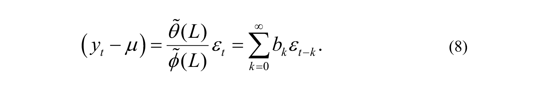 In this way, (yt – μ) can be expressed as an AR(∞) (12):