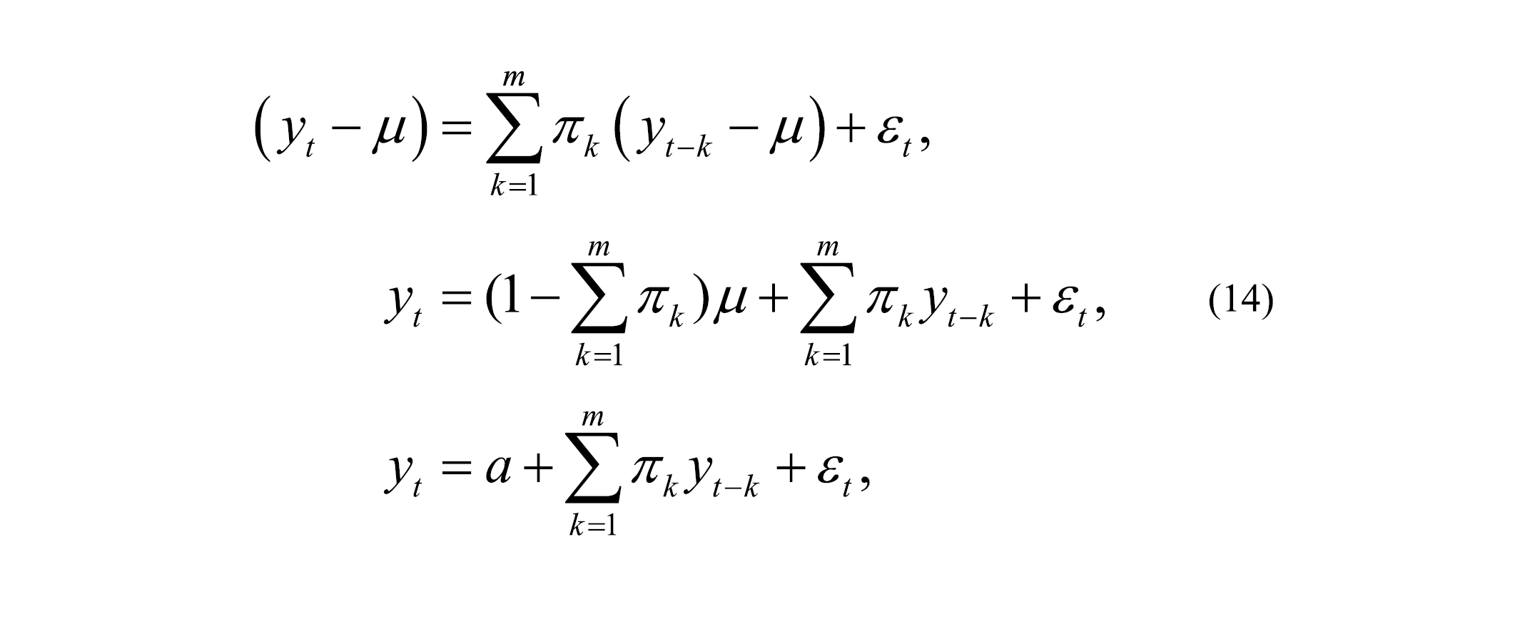 This expression can in turn be truncated to yield an approximation of (yt – μ) as an AR(m) process (13):