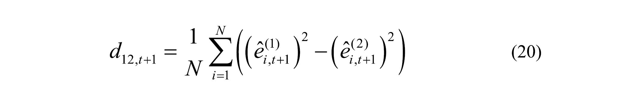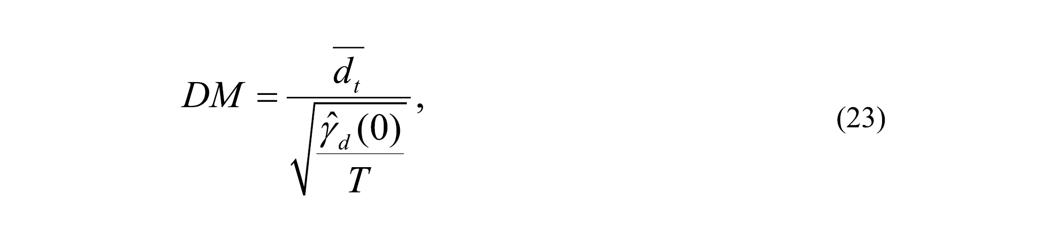 Where dt = (e¹t)² – (e²t)² is the difference between the squares of the residuals of the two kind of forecasts, 1 and 2, the bar represents the sample mean of the loss differential, and Ɣ d (0) is the sample autocovariance of the loss differential at displacement 0 (i.e. its sample variance).