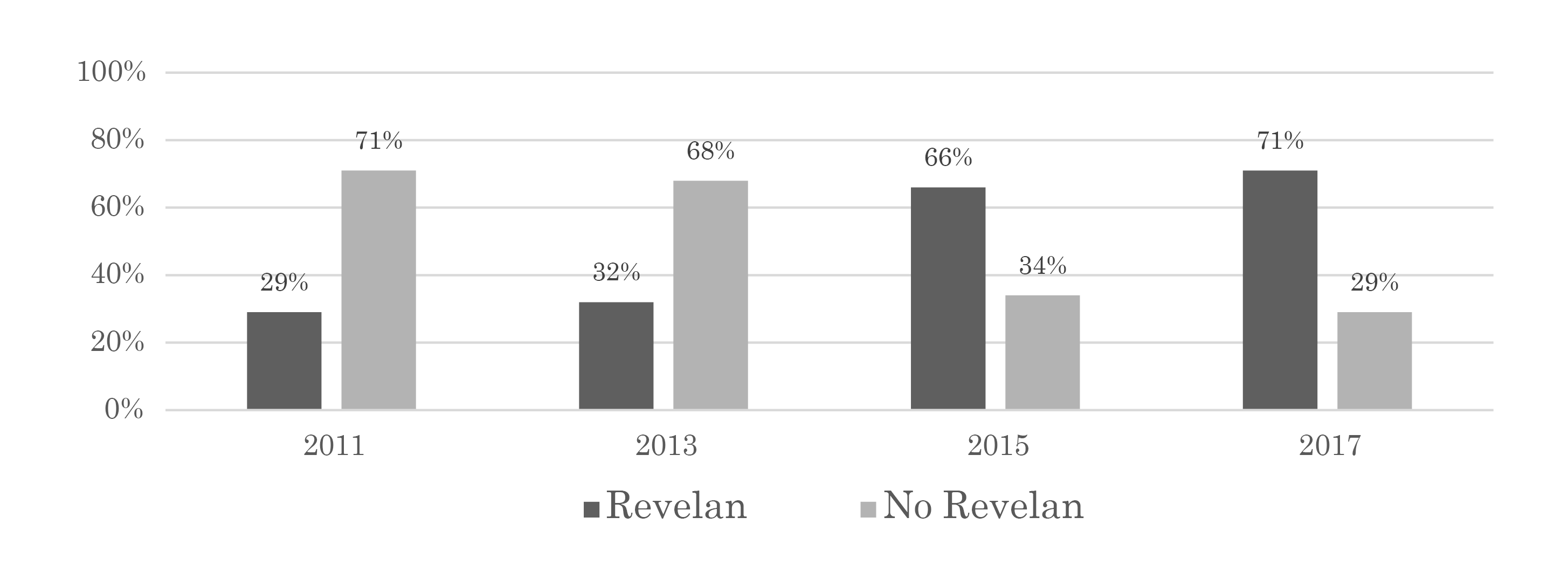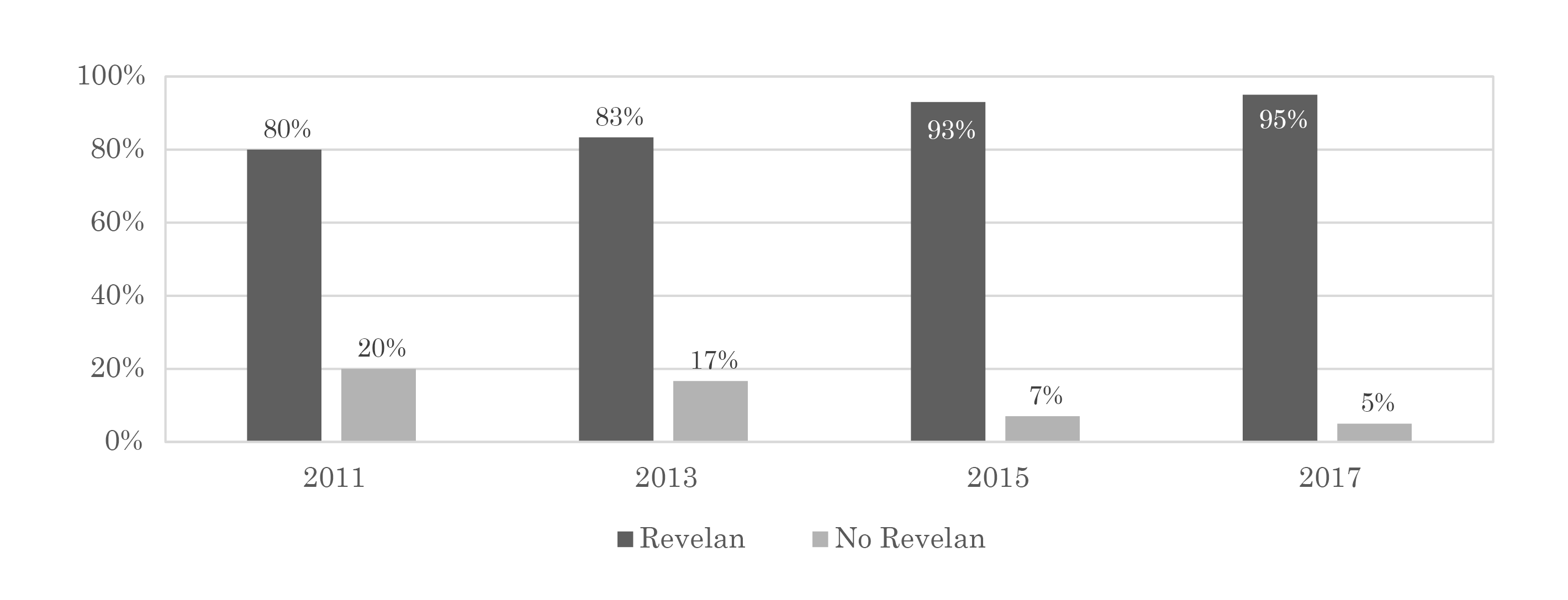 Figura 1. Porcentaje de empresas colombianas cotizadas no financieras que revelan sus políticas contables para reconocer sus inventarios en sus estados financieros anuales (2011-2017).