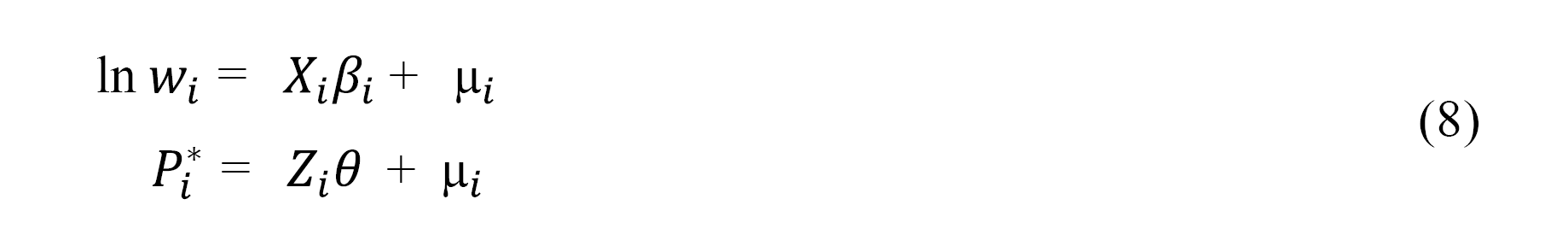 Una vez se estima la primera ecuación, se ajustan por separada las ecuaciones de salario para los dos géneros, como se sigue (ecuación 2)(ecuación 3):