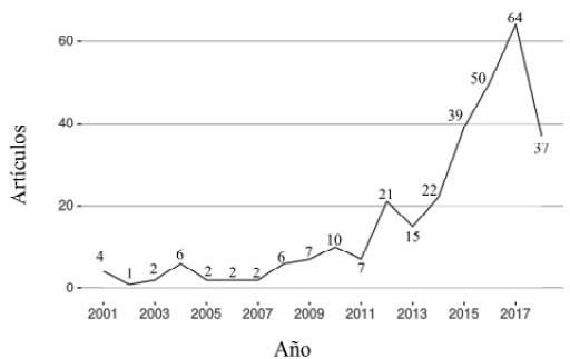 Para la construcción del artículo, se utilizaron herramientas que permitieran obtener una respuesta más clara de la historia o evolución del modelo efectual a través de los años y sus diferentes perspectivas. La primera herramienta empleada fueron las bases de datos de la Universidad Nacional de Colombia en su sistema de red de bibliotecas llamada “Sinab”, seleccionando en la base de datos indexada Web of Science aquellos artículos que tienen como temática el modelo efectual. Para esto se utilizó la siguiente ecuación de búsqueda: Topic = (Effectuation) con un rango de fecha desde enero de 2000 hasta el 25 de septiembre de 2018, dando como resultado 297 artículos.
