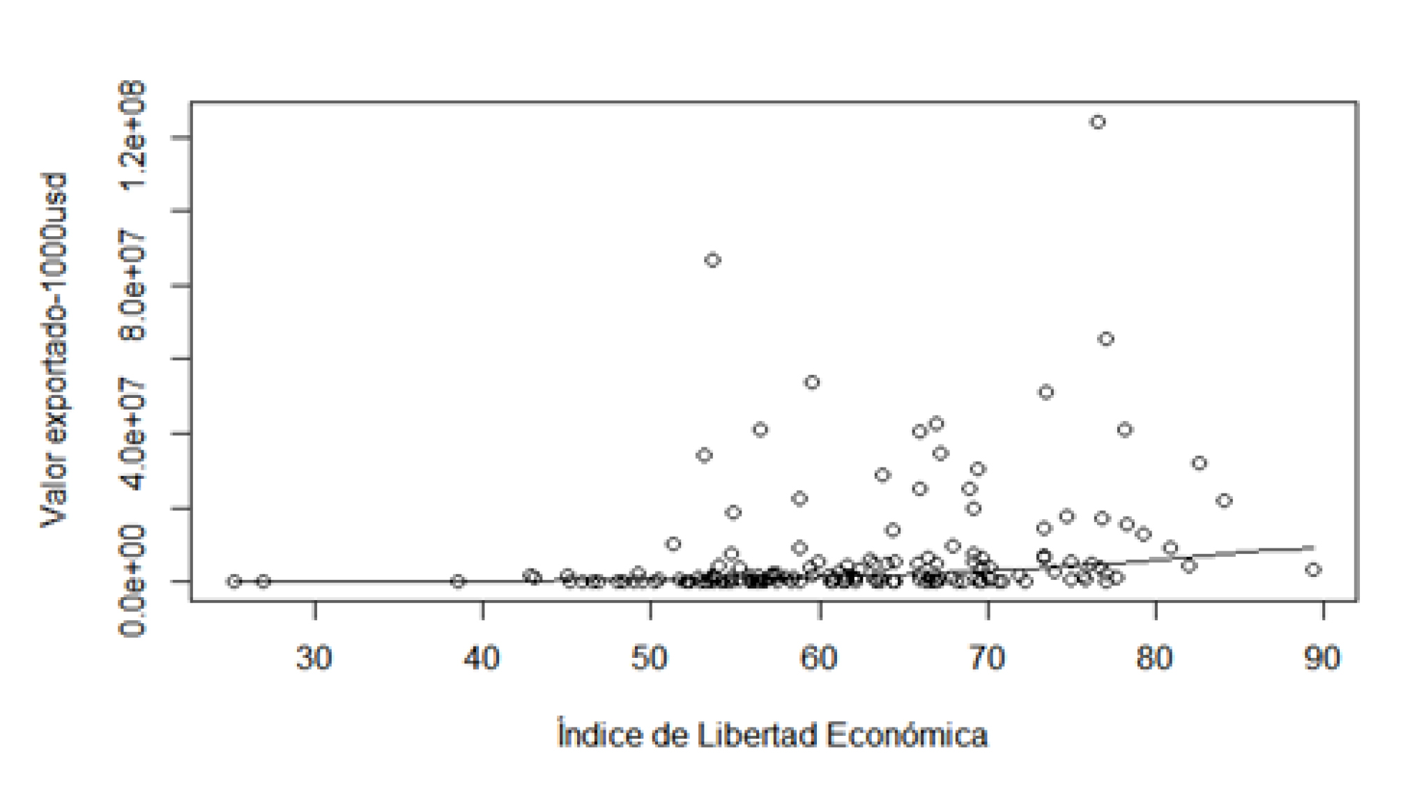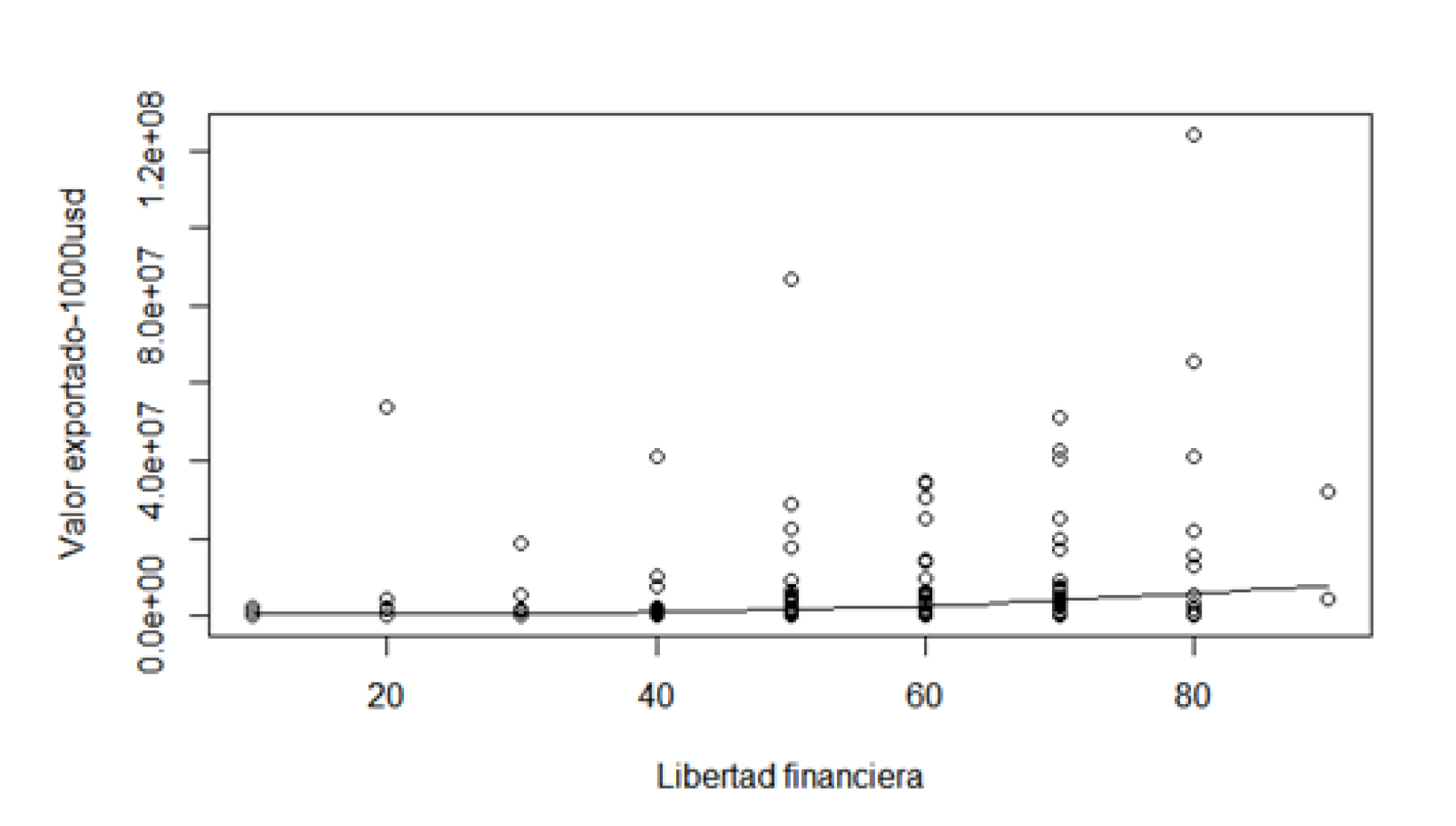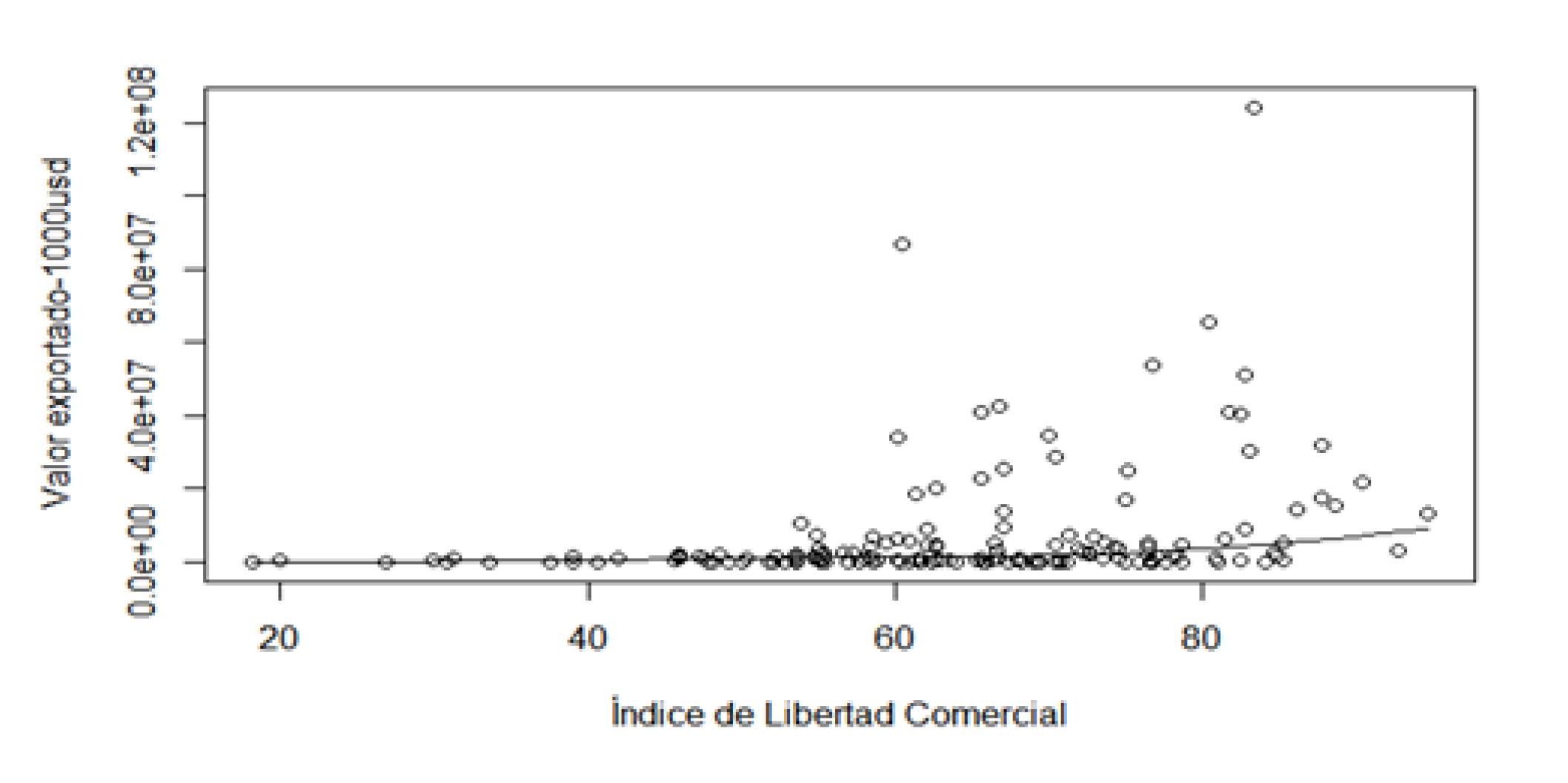 Se encuentra que, a mayor libertad comercial de un país o región, es significativamente mayor el valor de las exportaciones, fundamental para abrir nuevos mercados y ampliar el volumen exportado, para esto también es necesario tener en cuenta que todo país necesita inversión extranjera que aporta un capital sumamente importante para el rendimiento de la economía. Por el contrario, la carga fiscal muestra una disminución en las exportaciones internacionales, es decir, al aumentar dicha carga, se disminuyen dichas ventas internacionales.