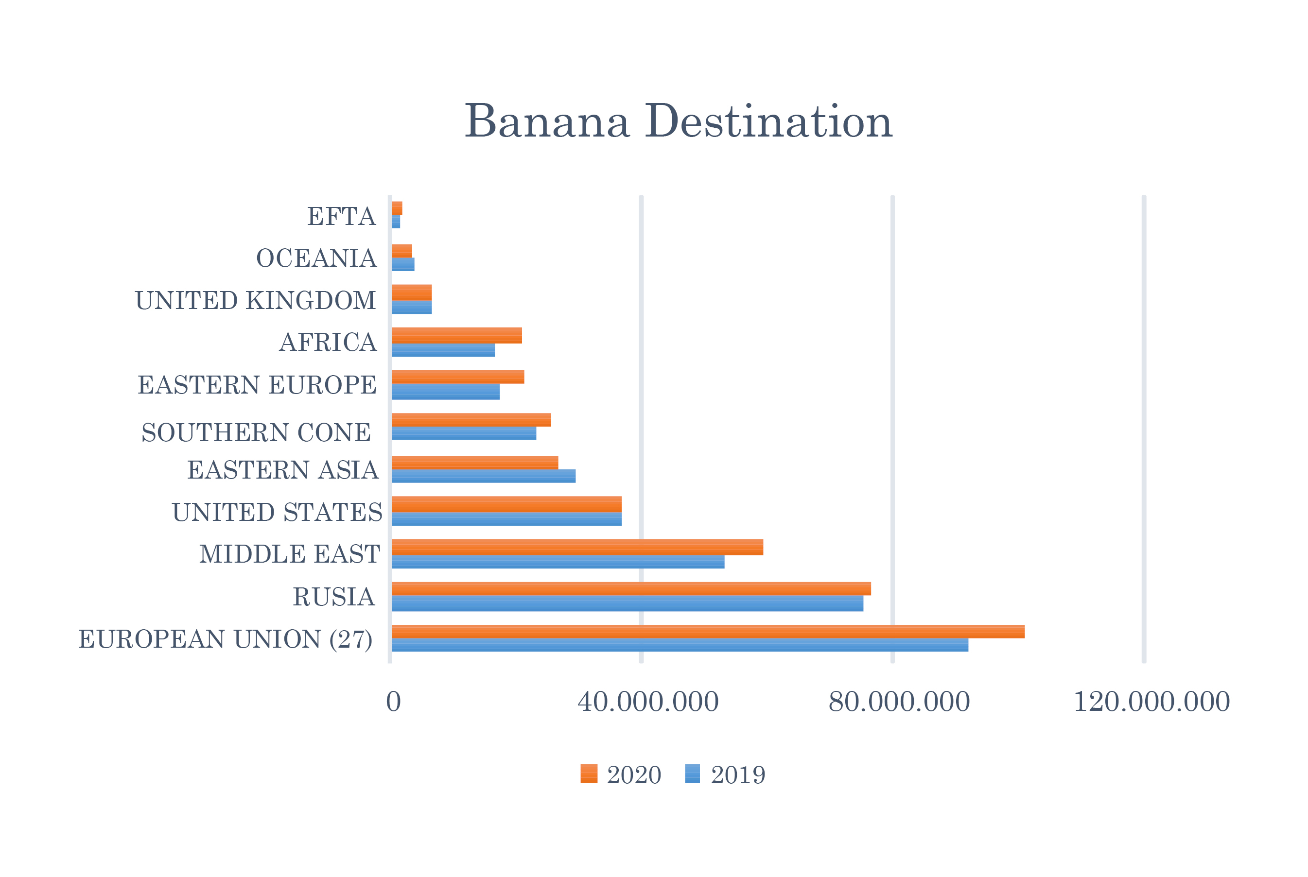 Figure 5. Destination markets for bananas in 2019 and 2020.