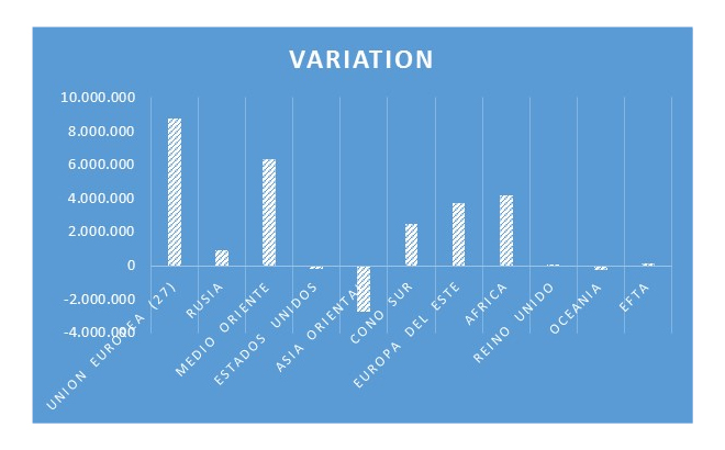 Figure 6. Variation of the increase in banana box exports 2020 vs 2019.