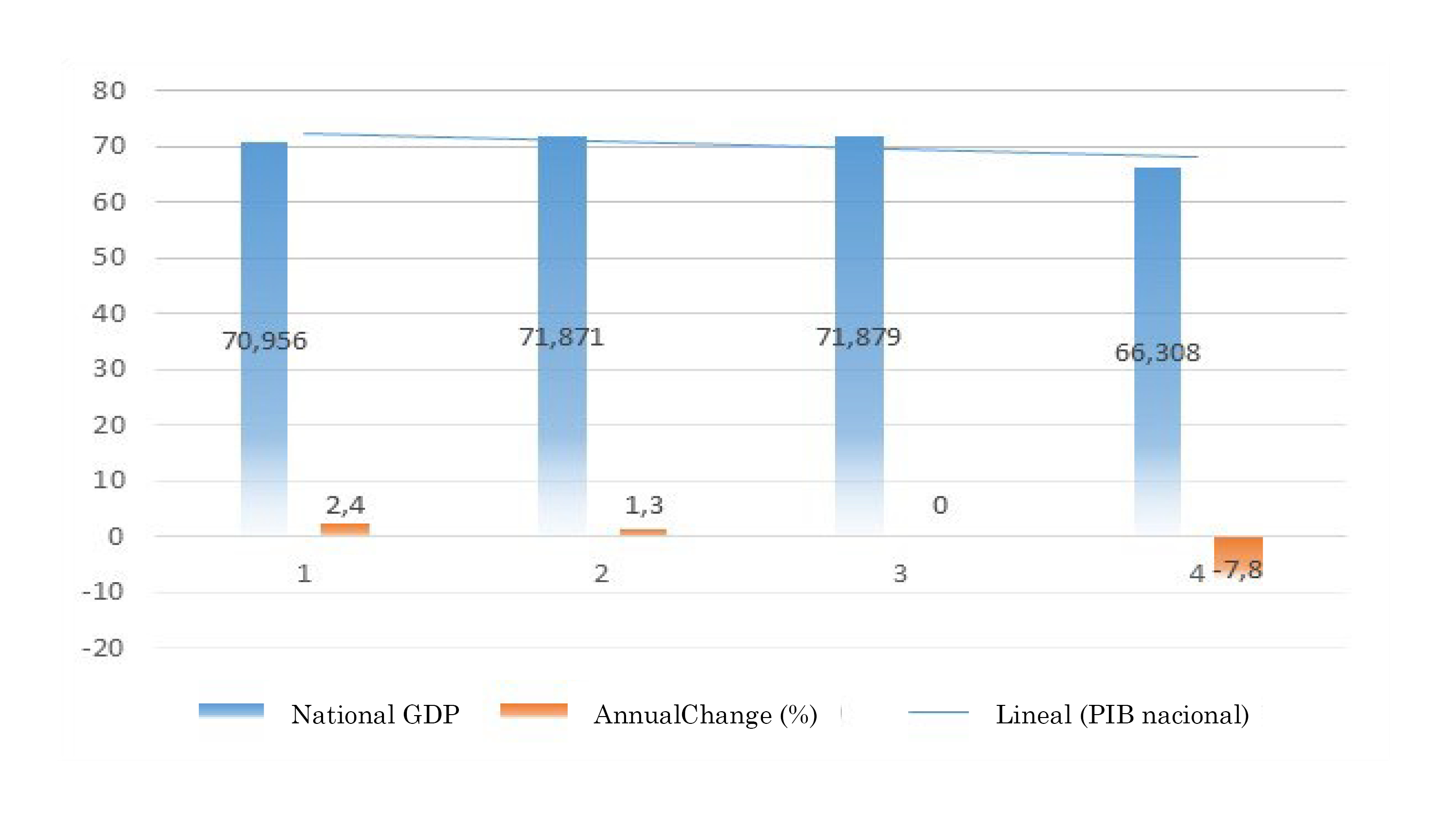 Figure 8. National GDP and annual variation 2017 to 2020.