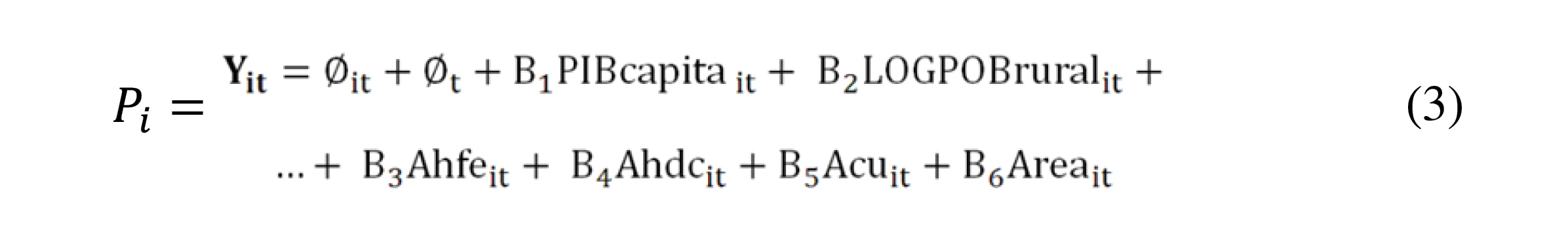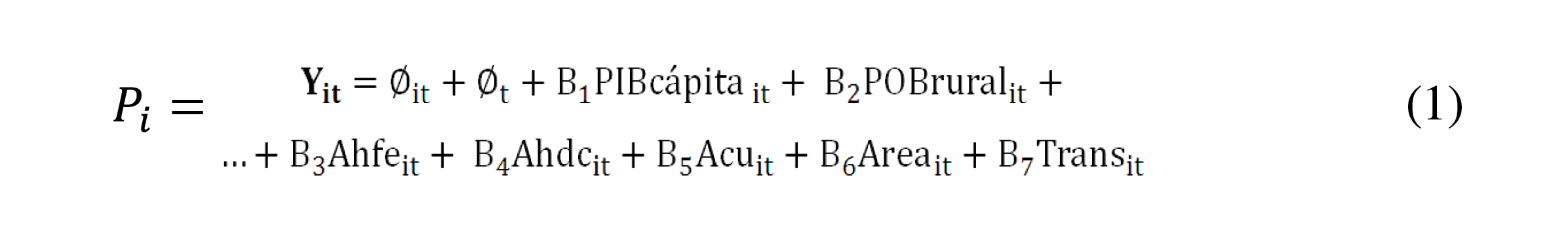 The econometric estimation is based on numerical data models. The data used in this study were processed using the panel data technique. Panel data allows us to observe the behavior of a dependent variable with respect to a group of independent variables of different individuals and moments in time. Therefore, panel data is a complete econometric technique as it allows combining two different types of data: Cross-sectional data and time series data. Based on the above, the panel data model has the following equation (1).