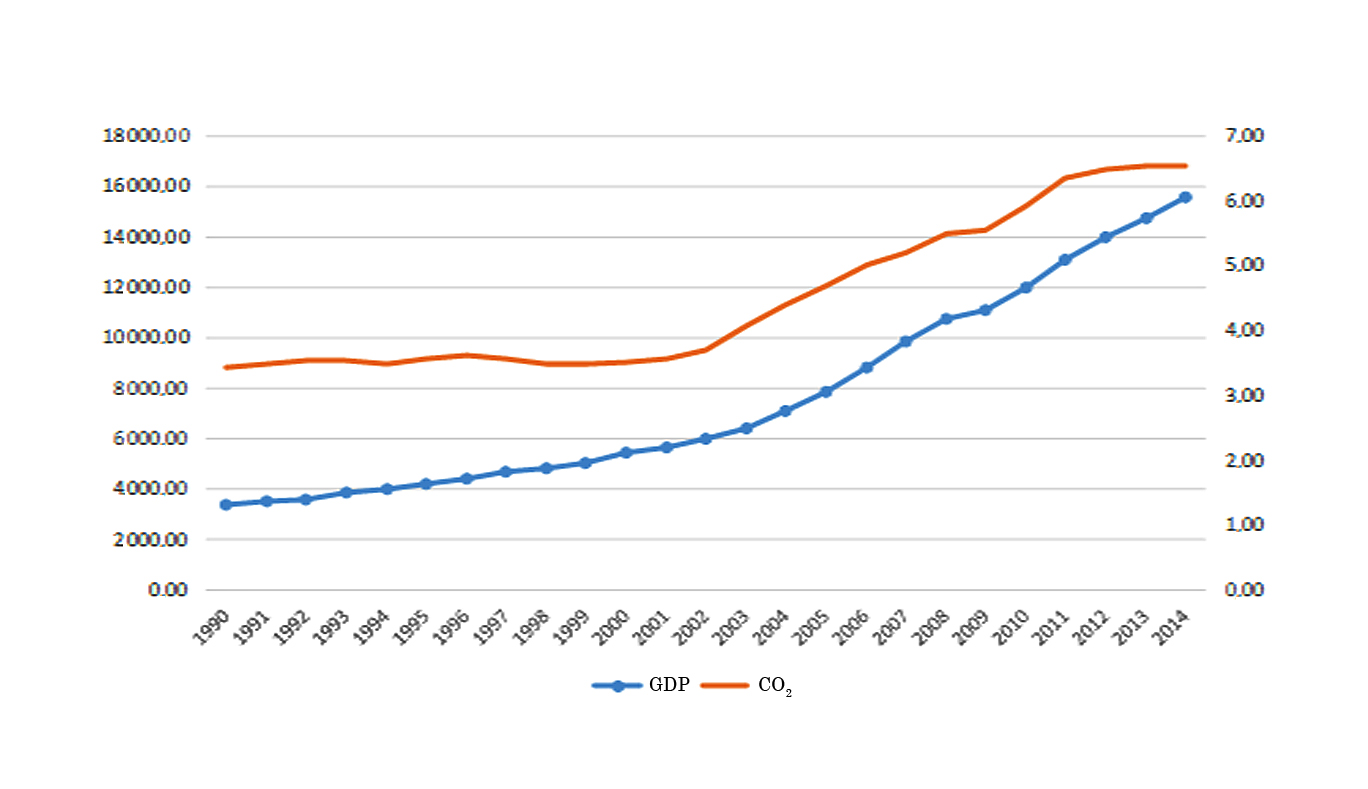 Figure 5. GDP/CO2 emissions upper middle income countries.