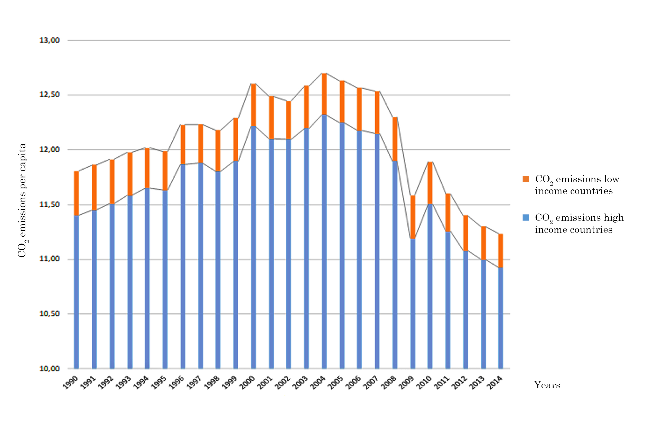 Figure 9. Comparison CO2 Emissions High vs. low income countries 2009-2014.