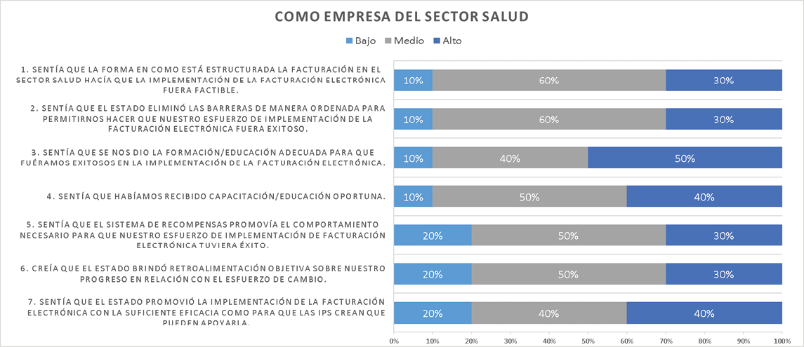 El presente trabajo de investigación busca identificar los factores empresariales que se ven afectados por la imposición de innovación tecnológica por parte del estado, los cuales afectan la forma de llevar los procesos dentro de la empresa y merma la cultura organizacional. Una vez indagados estos factores, se busca ofrecer unas recomendaciones de gestión del cambio al Estado que permita lograr una rápida y eficaz transición al uso de las herramientas tecnológicas, de tal forma que no sea difícil para la empresa. Se usa el caso de la implementación de la facturación electrónica (FE) porque es una innovación que afecta a muchas organizaciones en Colombia y especialmente en el sector salud por considerarse un sector sensible a estos temas al haber empresas que trabajan en jornada continua y que llevan procesos de innovación tecnológica impuestos también por otros ministerios del mismo Estado.