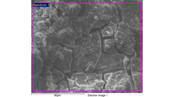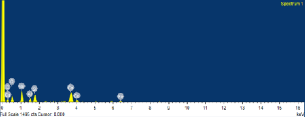 En la Fig. 11 se puede observar la microestructura de un mortero de escoria activado alcalinamente, con un zoom de 90μm, en la cual se hizo el análisis del espectro para corroborar los elementos presentes en el material.