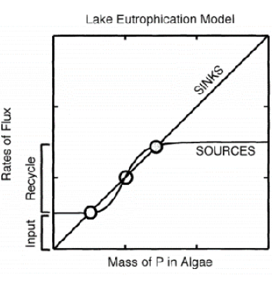 Classification of eutrophic lakes according to their response to phosphorus input reduction. In 1999, Carpenter, Ludwing and Brock developed a classification for eutrophic lakes based on their response to a reduction in phosphorus input. The categories are reversible, hysteretic, and irreversible. An eutrophic lake can be considered reversible if it presents an immediate recovery in trophic state, proportional to the reduction of phosphorus input into the lake [35]. A eutrophic lake can be considered hysteretic if it requires an extreme reduction in phosphorus input for a specific period to recover [35]. A eutrophic lake can be considered irreversible if recovery is not possible by reducing phosphorus input [35].