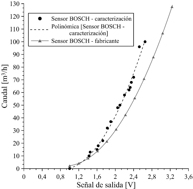 El proceso de caracterización ofrece un factor determinante para la interpolación de valores correspondientes a la magnitud física. Esta metodología, fue aplicada a los sensores de presión y flujo másico implementados en el banco, como una de las etapas de acondicionamiento requeridas por estos instrumentos.