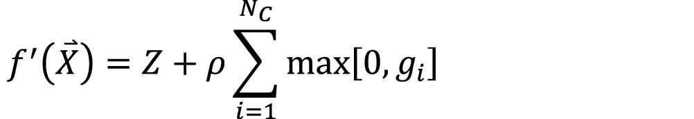 donde 𝑋⃗ es una solución que sigue la estructura mostrada en la tabla 1. En este caso, 𝑔𝑖 es el valor de la iésima- construcción (igualdad o desigualdad) y ρ es un factor de penalización configurable que por lo general se considera grande.