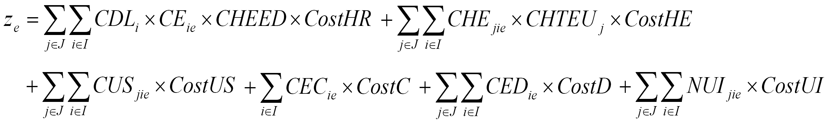 CUSjie : Cantidad de producción subcontratada en cada familia de producto j en los periodos i para cada uno de los escenarios e.