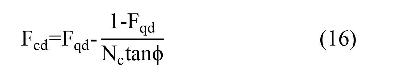 Where ϕ is the internal friction angle of the soil. Additionally, Hansen [36] found the following expressions to calculate the Fcd shown in Table 3.