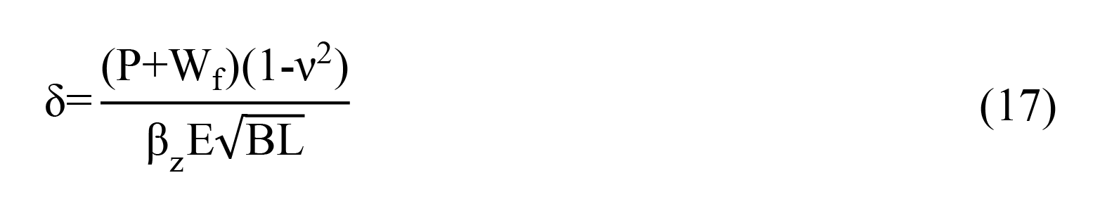 The second geotechnical requirement is that the settlements of the foundation must not exceed the maximum allowable values; thus, the value of the real settlements (δ) were calculated by applying the elastic solution proposed by Poulos and Davis [37] and used in the footing optimization study conducted by Camp and Assadollahi [9] and a second study by Wang and Kulhawy [7]: