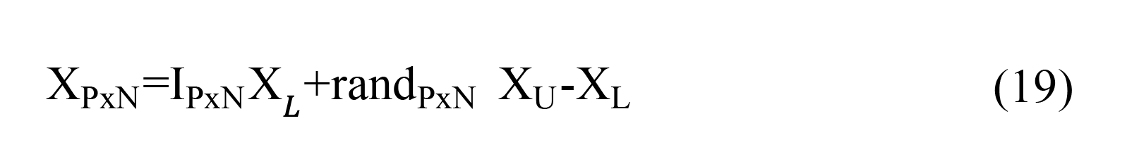 Where P is the number of points (states) that are desired in the search space; is the number of dimensions of the problem; IPxN is the identity matrix of size PxN; XL is the lower limit of the problem; XU is the upper limit of the problem and randPxN is the matrix of random numbers (pure randomness) between 0 and 1 of size PxN.