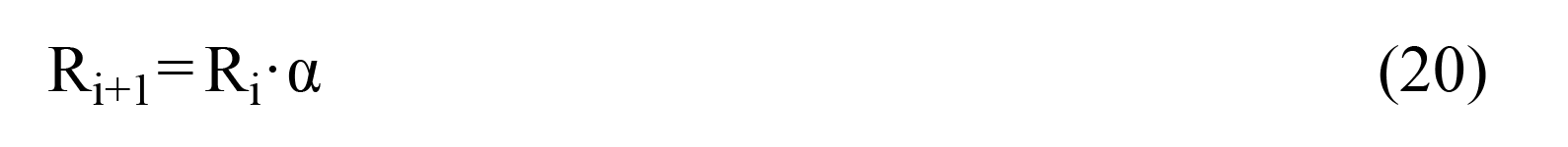 Where Ri is the initial radius, and α is the radius reduction coefficient.