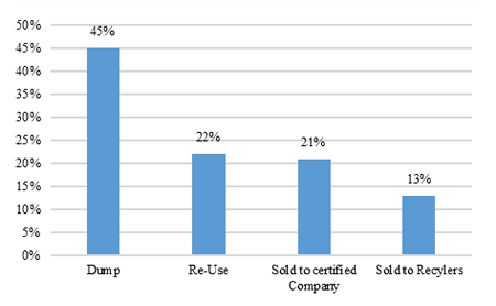 Fig. 9 shows the proportion of the data, the main options being: Disposal in a dump, selling to recyclers, selling to a certified company and Re-use and therefore the process of commercialization.