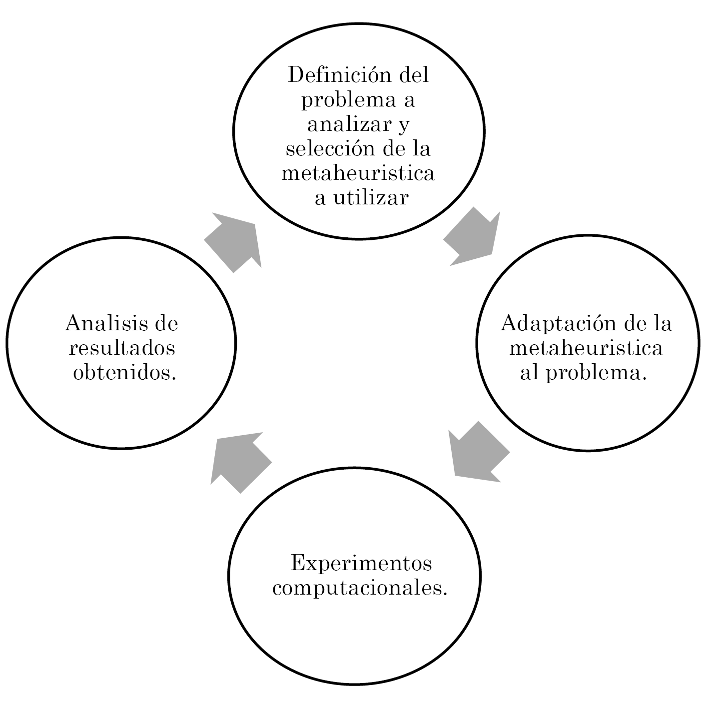 Para este trabajo se definieron las etapas que se consolidan en la Fig. 1 donde se inicia con la identificación tanto del problema a estudiar como de la metaheurística a utilizar. Posteriormente, se adaptó la metaheurística al problema. Luego se realizaron los experimentos computacionales y finalmente se analizaron los resultados obtenidos para verificar la pertinencia de adaptar la metaheurística al problema.