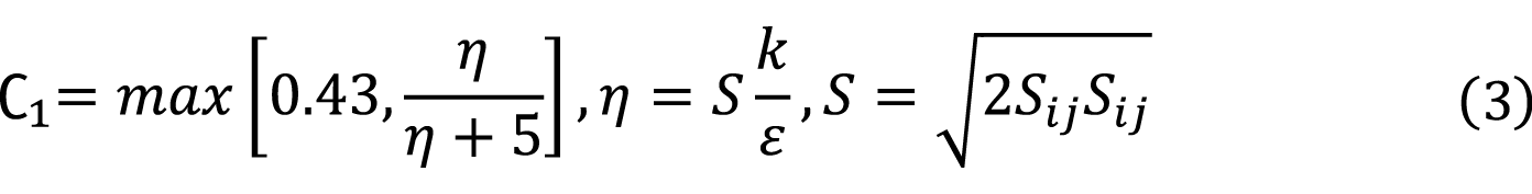 Las ecuaciones de transporte para el modelo k-ε realizable son (1) y (2):