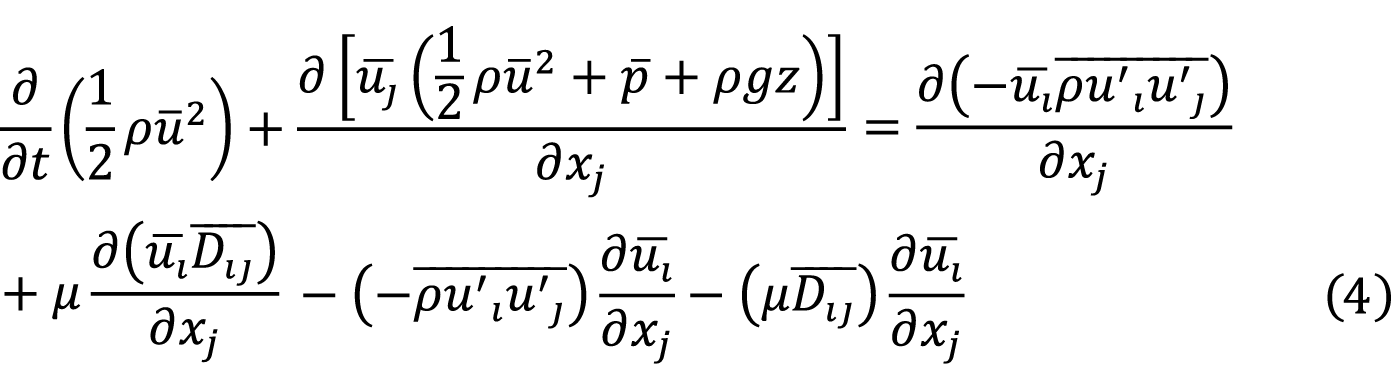 • El Término 4 es la energía cinética de la turbulencia o Turbulence Kinetic Energy, el cual representa la transferencia de la energía cinética del fluido a la energía cinética de la turbulencia.
