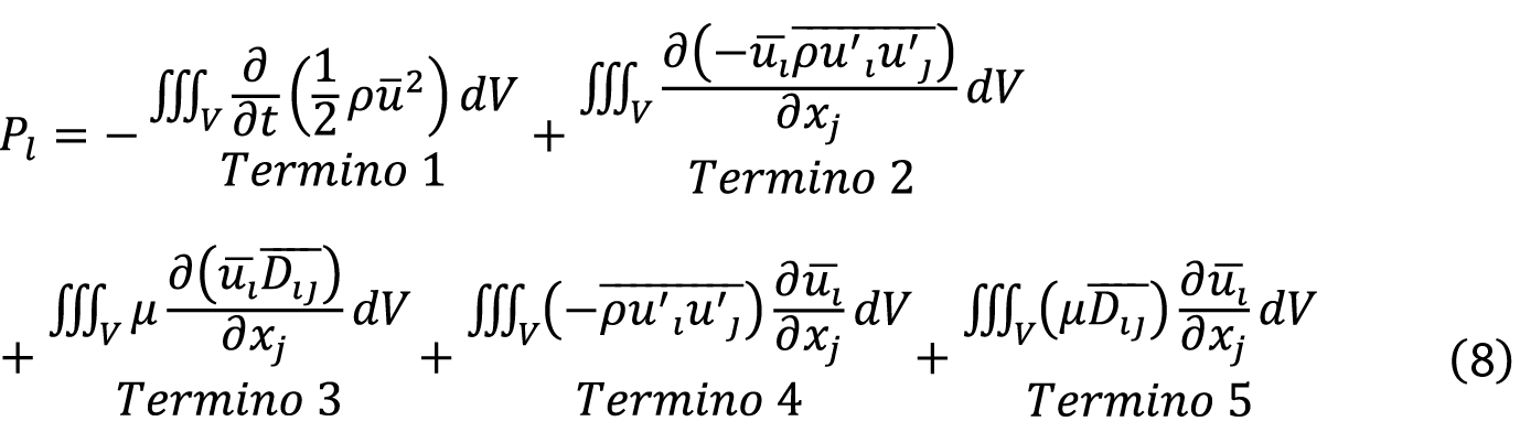 • El Término 5 muestra la disipación viscosa, el cual brinda una contribución negativa a la ecuación debido a una suma de tasas de deformaciones fluctuantes cuadradas [23].