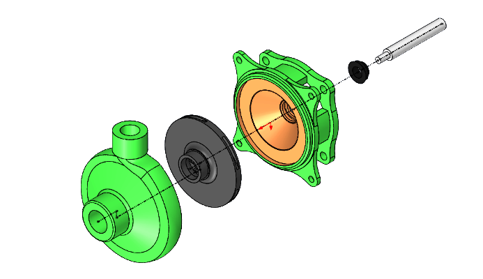 Finalmente, después de una cuidadosa y detallada recreación de las piezas se obtiene el modelo CAD, como se puede observar en la vista explosionada de la Fig. 2.
