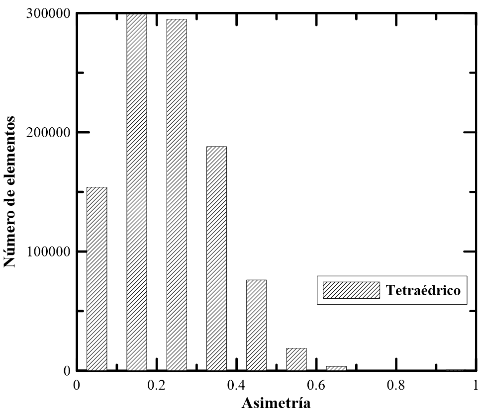 Para evaluar el mallado del proyecto se analizaron los estadísticos de asimetría y relación de aspecto. Con el software SALOME se reportaron valores mínimos, máximos y promedios de estos parámetros con el fin de compararlos con los rangos ideales y poder revisar a detalle la calidad de la malla.