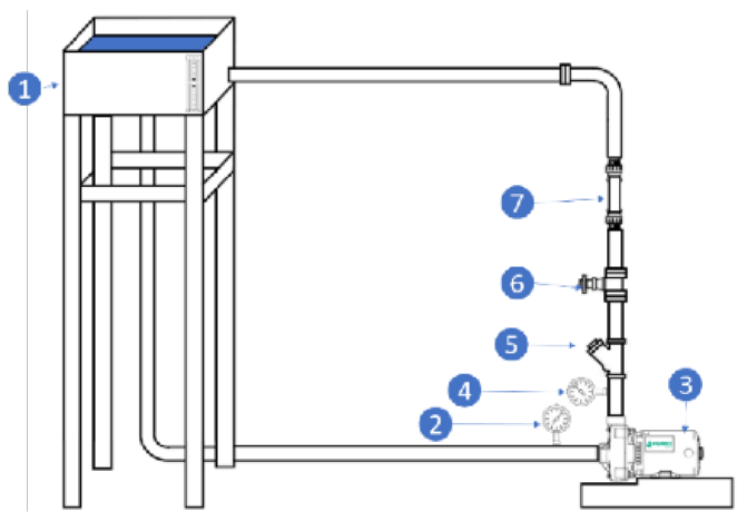 Adicionalmente se puede resaltar que la bomba está diseñada para trabajar a una temperatura máxima del líquido de 158°F (70° C). El material del cuerpo de la bomba es hierro fundido ASTM A-48, clase 30; el impulsor de la bomba es cerrado balanceado dinámicamente según ISO G6,3 y está compuesto de un material termoplástico llamado Noryl. El tipo de acoplamiento es mono bloque y el tipo de sello es mecánico 5/8’’ TIPO 6.