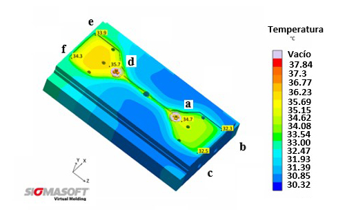 Conclusions— The results allowed studying the temperature behavior distribution in the mold, identifying as initial variables to consider in the experimentation: the initial mold temperature and the interactions between the cooling times-packaging and cooling times-initial mold temperature.