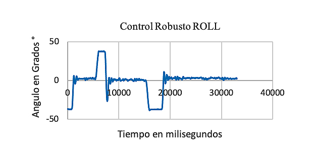 Para eliminar el error de estado estacionario, fue necesario agregar un término integral; para esto, el ángulo Roll se definió como (9):
