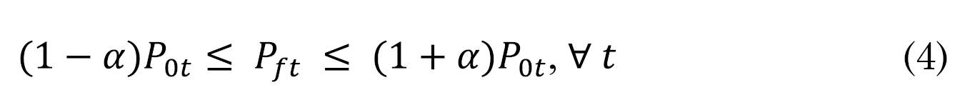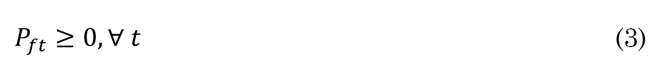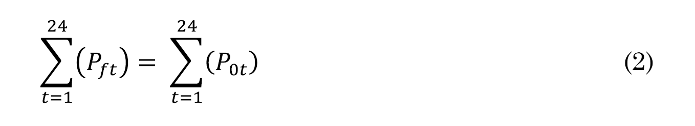 Pft es la demanda final en el segmento horario t y P0t es la demanda original en el segmento horario t antes de la aplicación del modelo. Donde la demanda final en el segmento horario t (Pft) no puede ser negativa, representado en la restricción de no negatividad de (3).