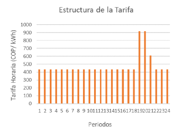 Methodology— For the calculation of hourly rates, the mathematical formulation described in resolution CREG 015 is implemented and hourly rates are obtained in three different levels following a logic similar to the demand response schemes called Time of Use.