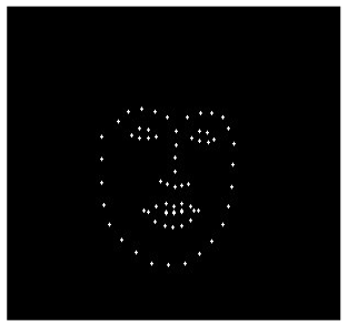 De esta forma, se remplaza cada una de las imágenes originales por una correspondiente a sus puntos de referencia facial (Fig. 3), creando una nueva base de datos con la que se logra realizar las pruebas correspondientes. En donde el algoritmo de aprendizaje, solo tendrá como entrada una imagen binaria (blanco y negro), reduciendo significativamente la información, resaltando solo las posiciones de las características que según los criterios FACS son fundamentales para identificar la expresión del rostro.