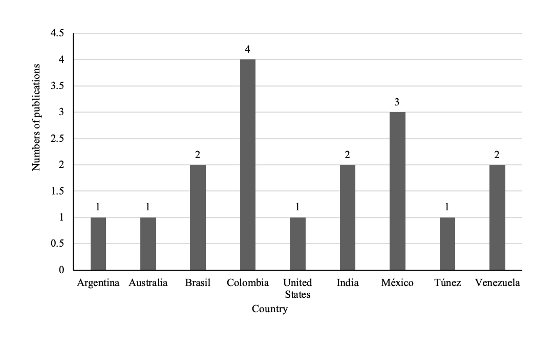 The largest number of articles found in terms of strategies used in saline soils was in Colombia with four works, three of them experimental and a literature review presented as a master’s thesis in which works from years prior to 2010 are analyzed. It is followed by Mexico in number of articles reported and in third place was Venezuela, India, and Brazil (Fig. 3). It is important to note that these articles consulted correspond to a 2010-2020 window. Before 2010, more articles were found, but they were not considered in this review.