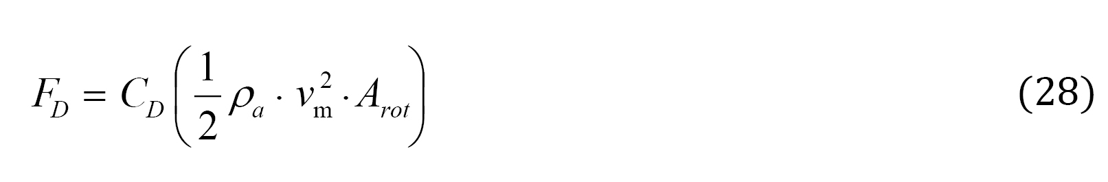 The sustentation force that allows the ascent and rotation of the rotor and the drag force that generates the wind on the blade of the windmill were calculated from the following equations (27)-(28):
