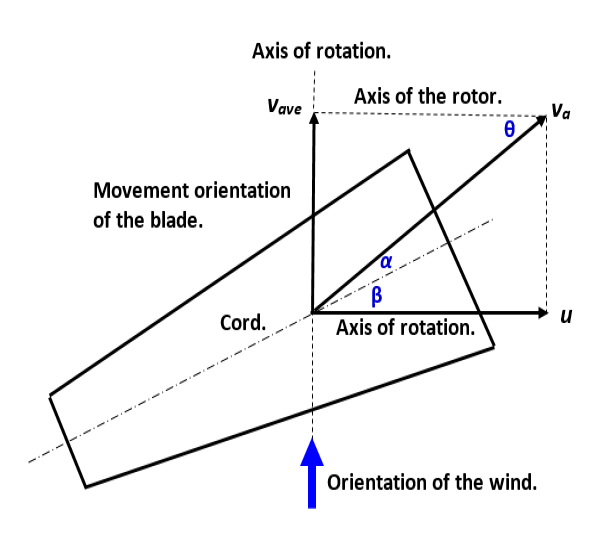 The calculation of the cord angles was carried out with base to the Fig. 2 in which the average speed of the wind (vave ) of the locality is shown; the tangential speed on the tip of the blade (u); the apparent speed or relative speed of the wind that receives the blade (va ); attack angle (α); inclination angle (β) and apparent angle of the wind (θ). The parameters were calculated with the following equation (4), (5), (6):